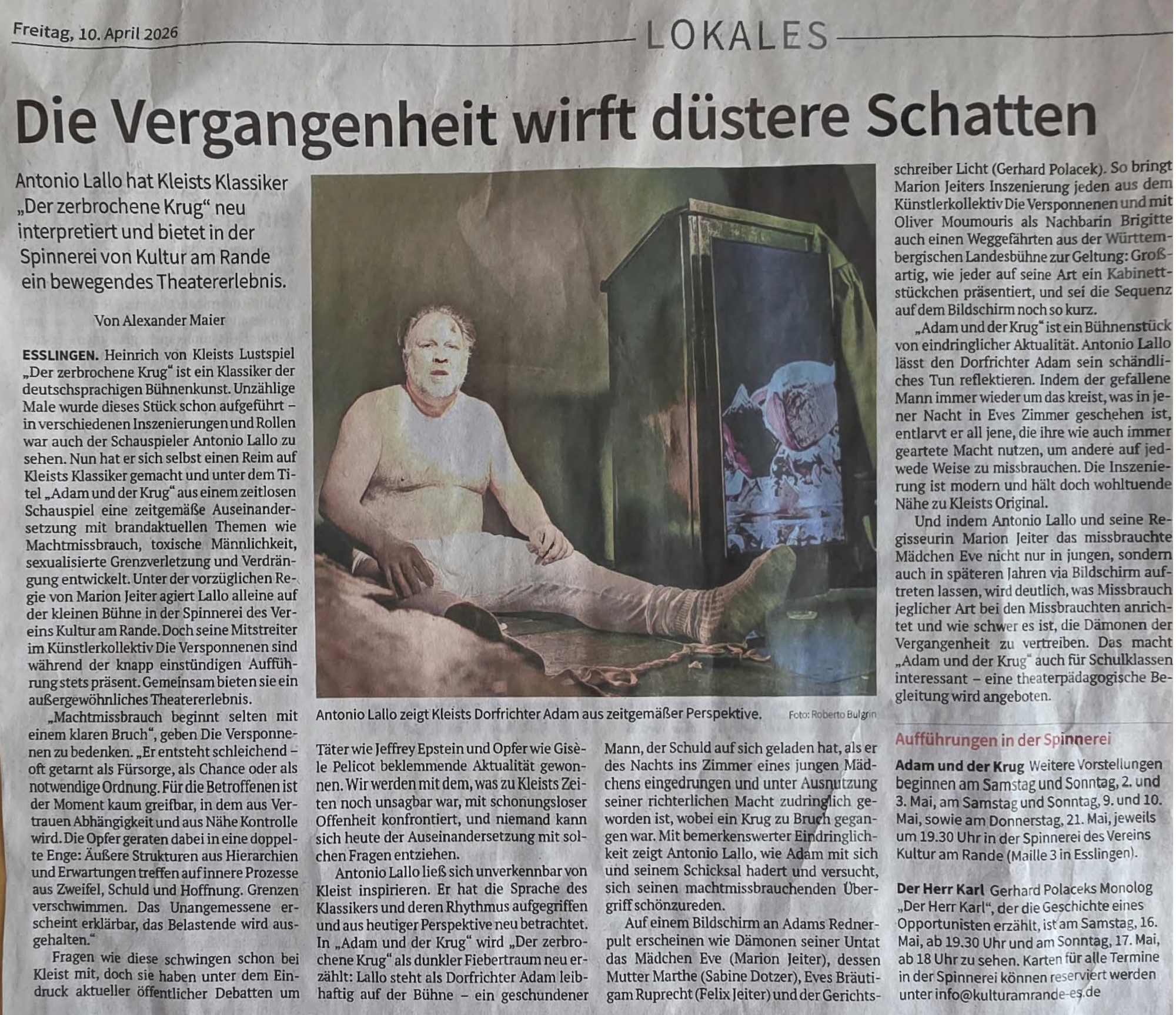 Alle Berichte, die in Zeitungen oder Social Media über die Alte Spinnerei, Kultur am Rande e.V. oder das Kollektiv "Die Versponnenen" publiziert wurden.